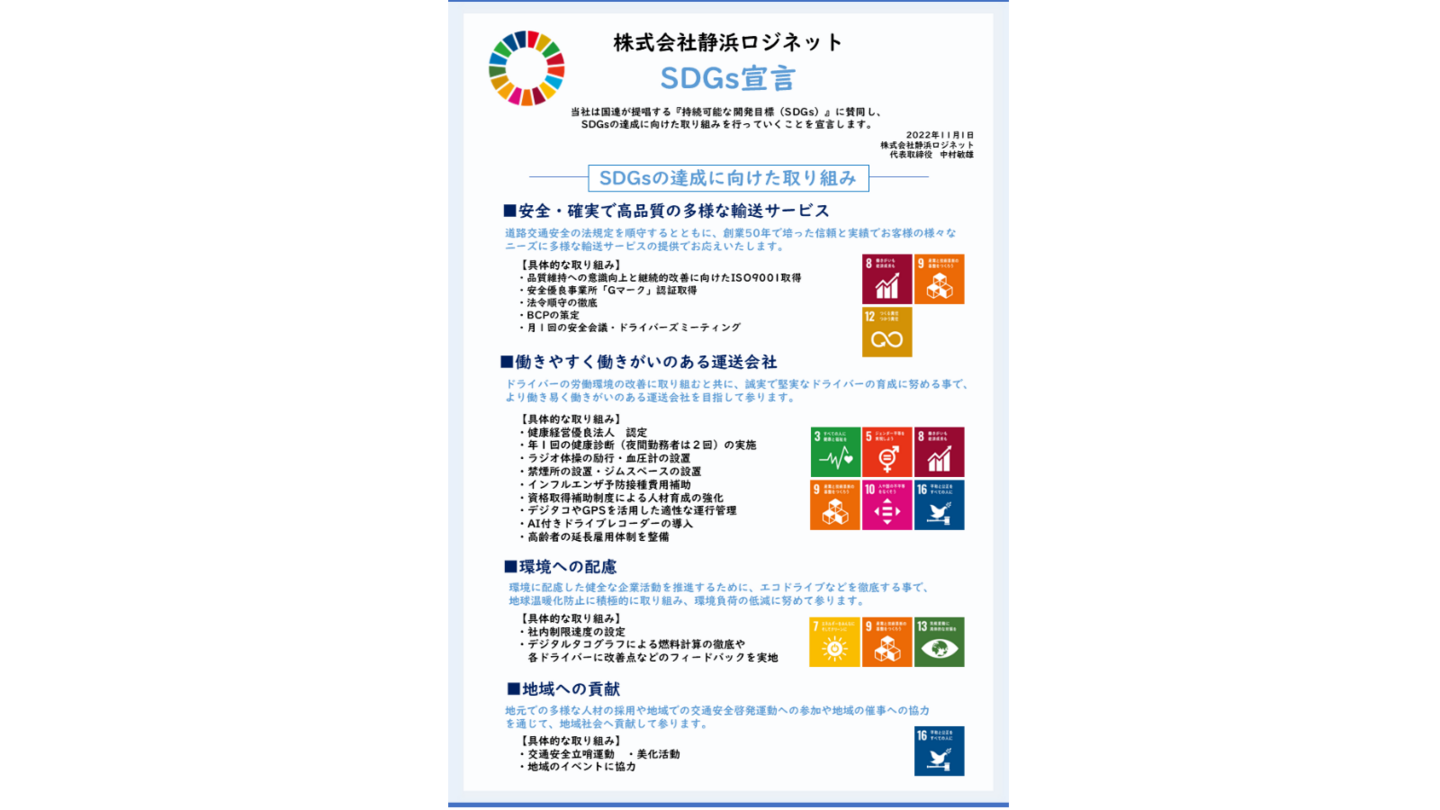 SDGsが掲げる目標達成に向け、下記のとおり宣言いたします。